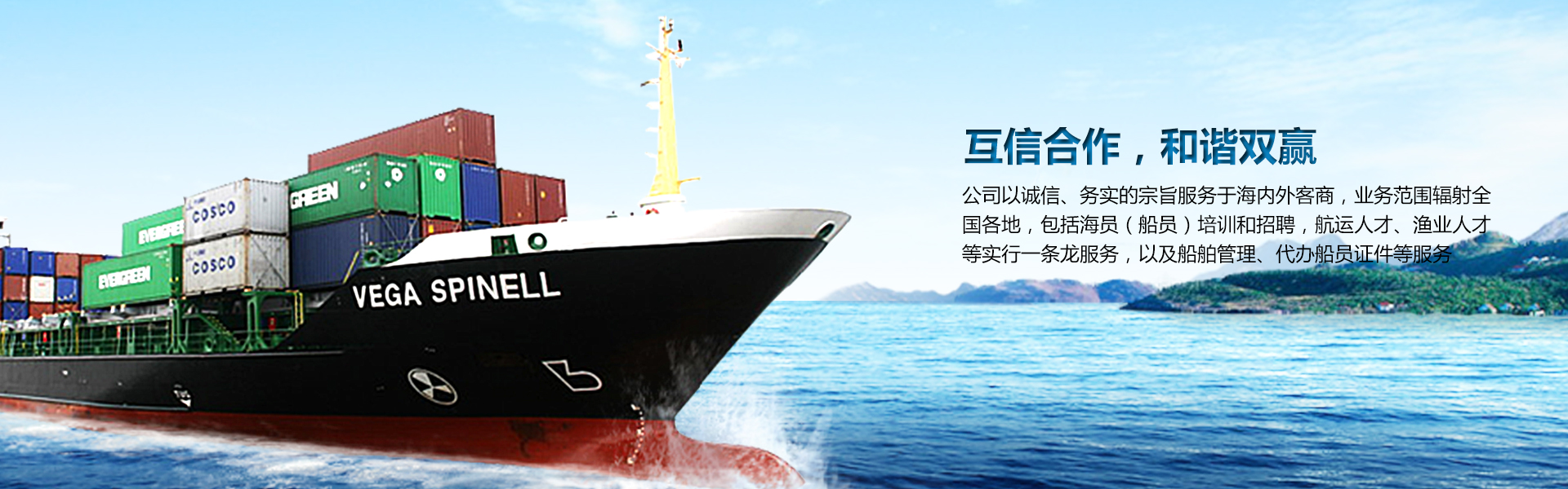 公司(si)循序漸進(jin),努力進(jin)取,從發展開始一直(zhi)秉(bing)著“市場導(dao)向,互信合作,和諧雙贏”的(de)理(li)念(nian),堅持“信譽至上,真誠服務”的(de)原則,逐漸在激烈競爭的(de)市場中形成(cheng)自身(shen)特色的(de)經營模(mo)式:“定單(dan)培訓,整船(chuan)套(tao)派(pai),承包配送,零星(xing)散派(pai),合同固派(pai),多(duo)船(chuan)代理(li)”!
